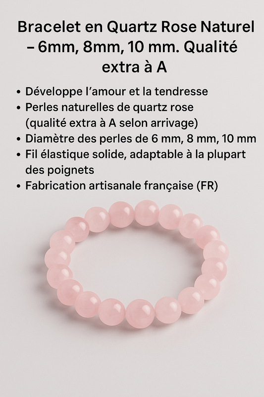 Bracelet en Quartz Rose Naturel-6mm,8 mm,10 mm-Qualité extra à A