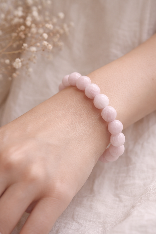Bracelet Kunzite naturelle AA – Perles 10 mm – Pierre de douceur