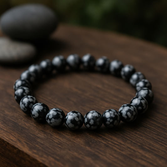 ❄️ Bracelet en Obsidienne Flocon de Neige – 6 mm, 8 mm, 10 mm – Qualité extra à AA🌑