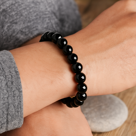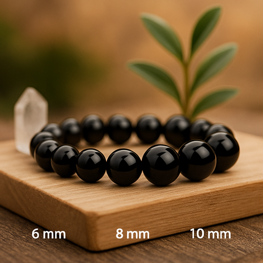 🖤 Bracelet en Obsidienne Noire – 6 mm, 8 mm, 10 mm – Qualité A à AA